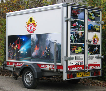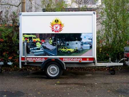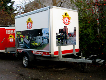 Trailere TR-4 Brand & Redning TR-4 Brand & Redning TR-4 Brand & Redning TR-4 Brand & Redning Trailer dekoreret med print for DUI Hvidovre printet er forskelligt på siderne. Budskabet kommer ud på en sjovere måde